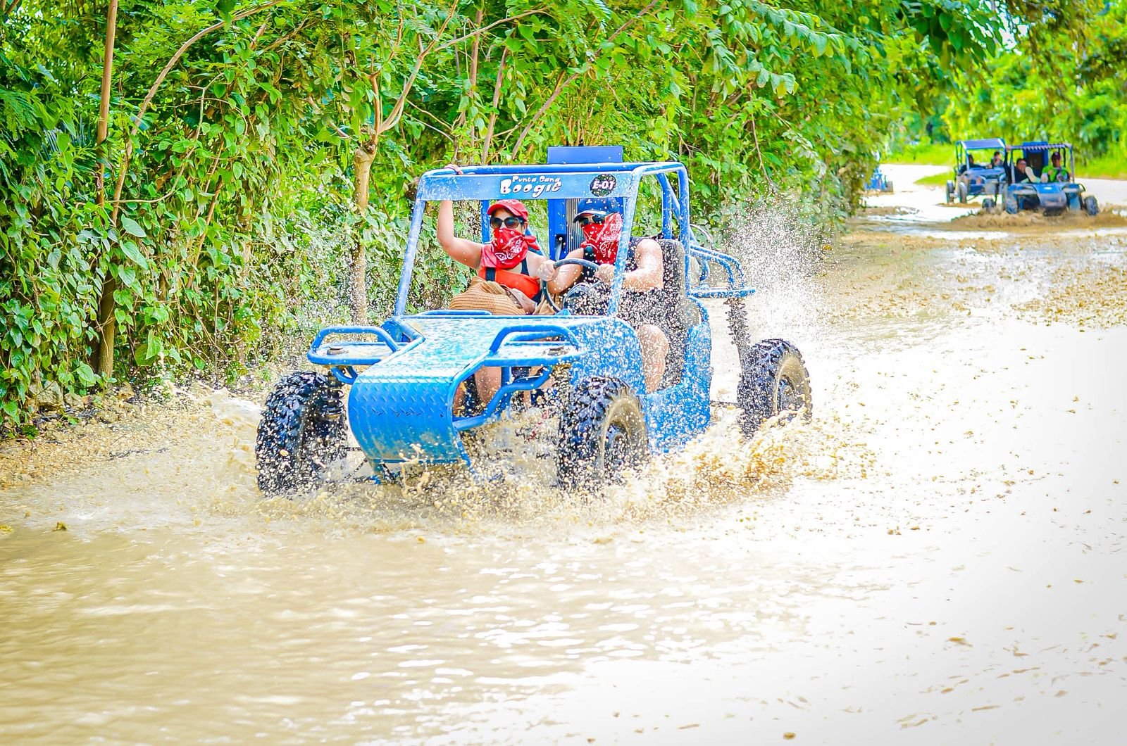 Experience the ultimate adrenaline rush in Bávaro, Punta Cana, driving your own quad or double buggy through wild tropical landscapes.